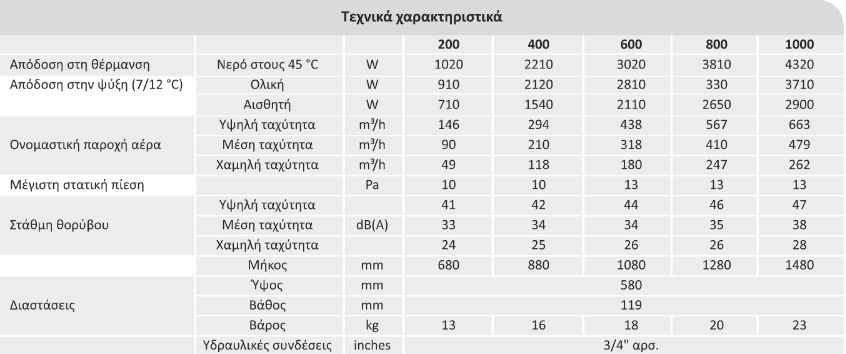 Απόδοση στην Ψύξη: 0,91 έως 3,71 kW (W 7/12 °C / A 27 °C)