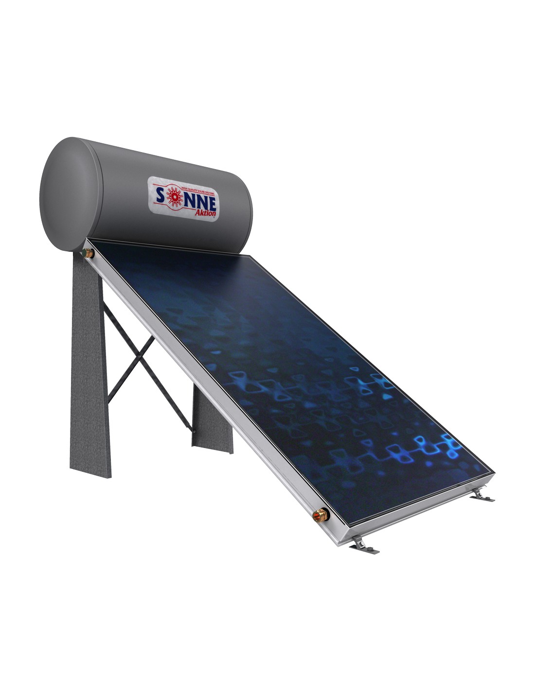 Ηλιακός θερμοσίφωνας Sonne Aktion Χάλκινος με συλλέκτη Altas για σύνδεση με αντλία θερμότητας για αξεπέραστη απόδοση και άφθονο ζεστό νερό κάθε εποχή.
