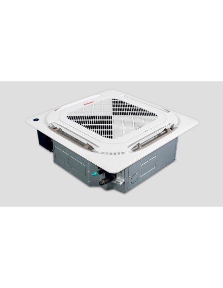 Η νέα σειρά των κασετών ψευδοροφής V7, ήρθε για να εντυπωσιάσει και τους πιο απαιτητικούς αφού μπορεί να καλύψει όλες τις ανάγκες μιας ιδιαίτερης εγκατάστασης και υπόσχεται άριστες συνθήκες κλιματισμού σε ξενοδοχειακές μονάδες, επιχειρήσεις και σε κατοικίες. Ο ιδιαίτερος σχεδιασμός της σειράς είναι αυτός που την κάνει να ξεχωρίζει αφού η 360° έξοδος αέρα προσφέρει υψηλά επίπεδα άνεσης και αποδοτικότητας και η ανεξάρτητη κίνηση περσίδων παρέχει την απαραίτητη αυτονομία αλλά και την ομοιόμορφη κατανομή του αέρα στο χώρο σας. Δεν θυσιάζει τίποτα, ωστόσο, και από την εξοικονόμηση ενέργειας αφού η λειτουργία Hotel Menu προσφέρει εξοικονόμηση ενέργειας που φτάνει το 70%, ενώ η απομακρυσμένη διαχείριση μέσω Wi-Fi, σας εξασφαλίζει όχι μόνο τον απόλυτο έλεγχο αλλά και οικονομία στη χρήση. Φυσικά, φροντίζει και για την ανανέωση του αέρα στο χώρο ώστε να αναπνέετε σε ένα πραγματικά καθαρό και υγιεινό περιβάλλον, διευκολύνοντας, χάρη στις ειδικές εγκοπές στην εσωτερική μονάδα, την είσοδο φρέσκου αέρα.