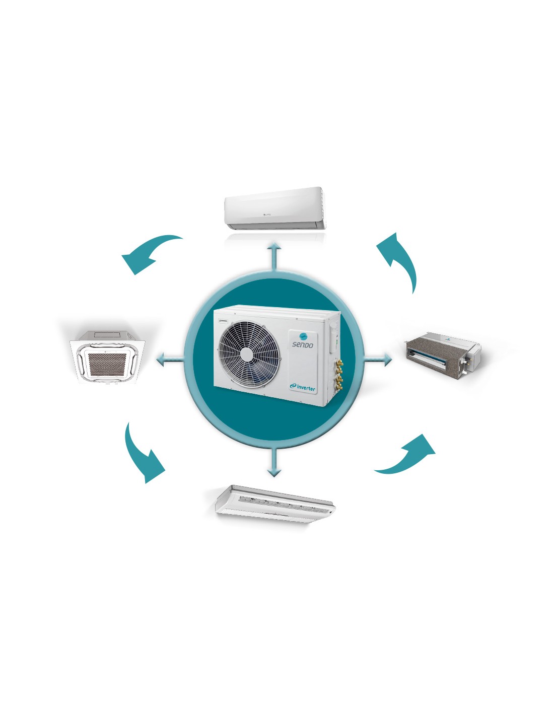 Εξωτερική μονάδα Sendo με Wi-Fi, συμπαγείς διαστάσεις και τεχνολογία Inverter, συνδυάζεται με πολλαπλές εσωτερικές μονάδες για όλες τις χρήσεις.