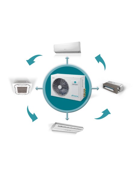 Εξωτερική μονάδα Sendo με Wi-Fi, συμπαγείς διαστάσεις και τεχνολογία Inverter, συνδυάζεται με πολλαπλές εσωτερικές μονάδες για όλες τις χρήσεις.